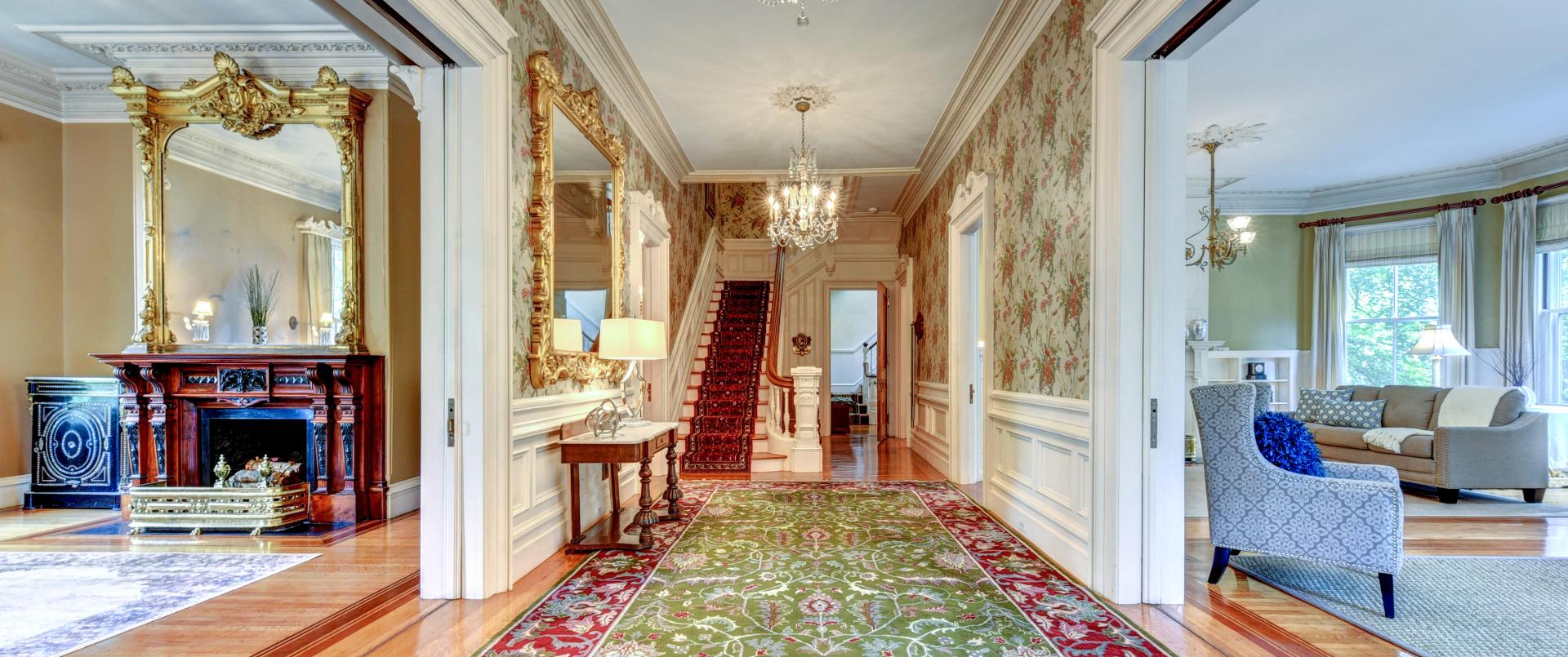 Built in 1878, the William F. Sayles House is one of the most exuberant period homes on the East Side of Providence offering nearly 7,500 square feet of living space. The majestic entry hall welcomes all into the home and features elegant chandeliers and wonderful period details, including carved wood appliques. Pocket doors with etched glass off the right entryway open into a large south facing double living room which is accented with classic millwork, a fireplace, and custom built-ins. Up the grand stairwell are the magnificent sleeping quarters and luxurious bathrooms, including a master suite and an in-law apartment.