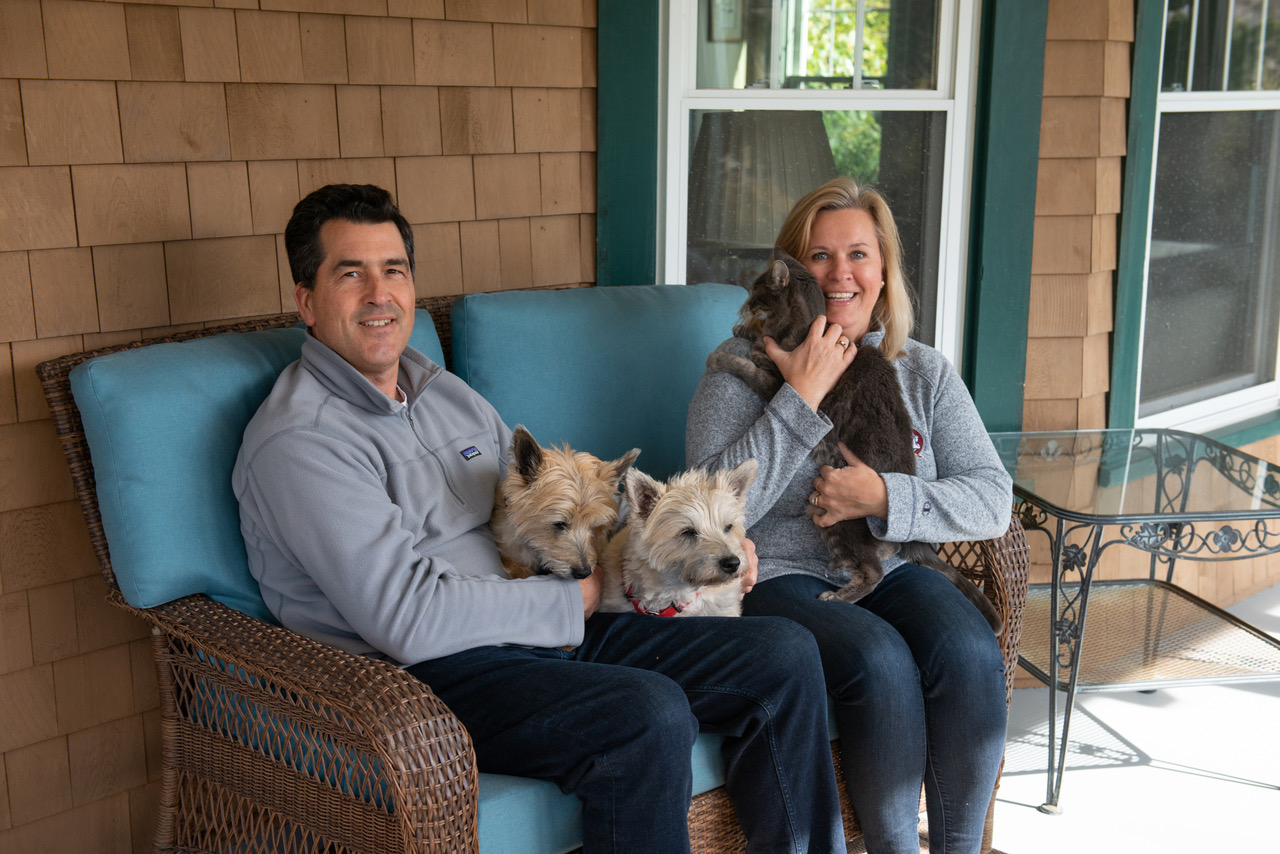 Lisbeth Herbst & Morgan Lowis, Barrington: Lisbeth and Morgan were involved in the "Porch Project", a neighborhood donation run by noted local photographer Julie Brigidi. Volunteer families would have Julie take pictures of them on their front porches, and instead of paying her fee, would instead donate to one of three local organizations. Lisbeth and her husband donated to The East Bay Pantry, while Morgan's donation went to the Bristol Animal Shelter.