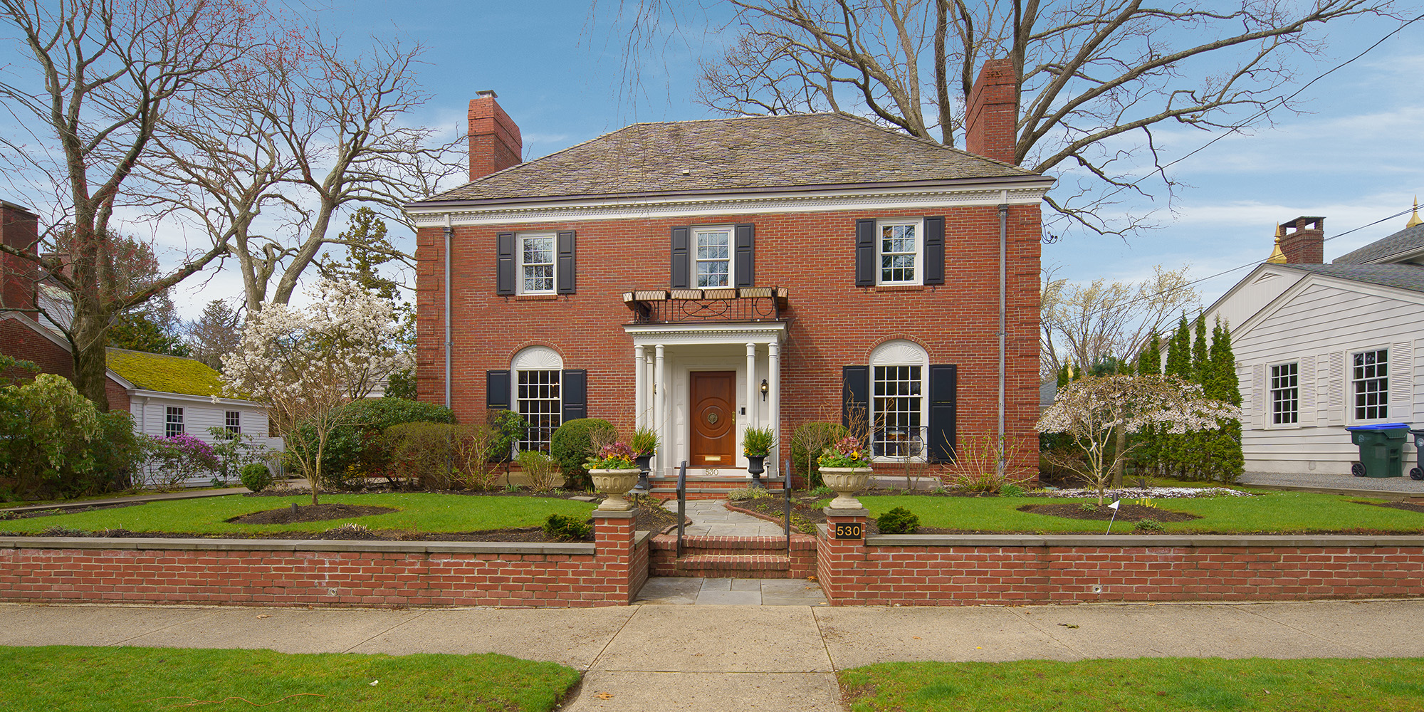 This elegant, 4-bedroom brick Georgian Colonial has just undergone a complete renovation with incredible attention to detail and thoughtful design. A rebuilt entryway with a custom mahogany front door leads into a grand foyer featuring a curved staircase and intricate original moldings. The graciously scaled living room boasts a carved marble fireplace and floor-to-ceiling windows. A formal dining room leads into the renovated kitchen with new marble countertops, a full-height backsplash, Sub-Zero refrigerator, and Thermador Induction cooktop. A sumptuous family room with high ceilings and a wall of windows provides walkout access to the private backyard with new landscaping and a serene water feature. Upstairs, a stunning hall bath showcases a marble mosaic floor, while the primary bedroom offers two walk-in closets and a new marble bath with double vanities.
