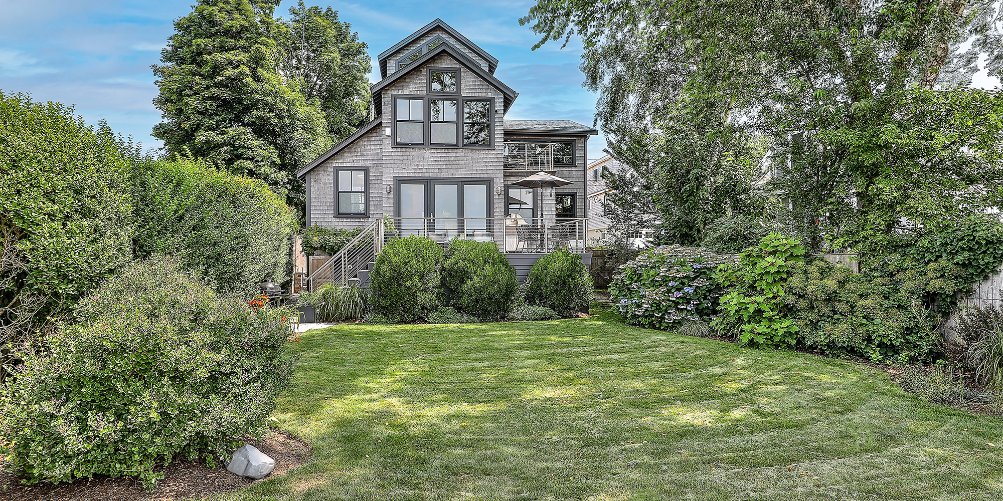 Water views over Mount Hope Bay as well as the Sakonnet River allow for 360-degrees of sunrise-to-sunset visual splendor. This architect-designed, 3-bedroom, 2-bath retreat in the Common Fence Point area of Portsmouth is in proximity to the beach for endless water recreation. The open floor plan includes a chef's kitchen featuring Thermador appliances, a Fisher & Paykel 2-drawer dishwasher, Neolith counters, and custom cabinetry. The great room with Pella sliding doors opens out to the large Ipe deck for entertaining. The second floor features a cathedral-ceiling primary bedroom with a walk-in closet and balcony. A large guest bedroom and a terrazzo-tile heated bath round out the floor, while a third-floor tower with more stunning views caps off this coastal stunner.
