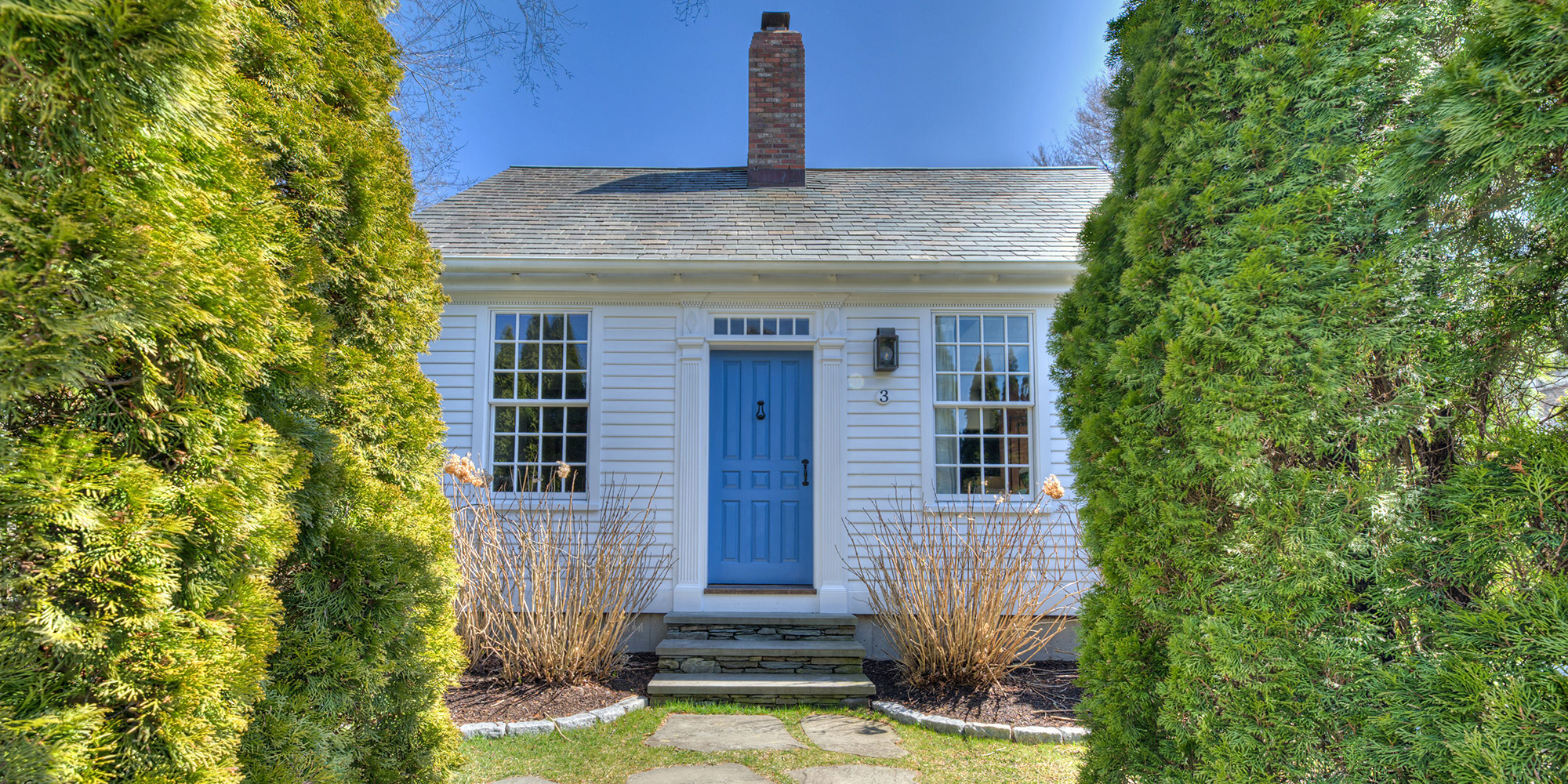 A 3-bedroom, 2.1-bath Cape built in 2003, its materials were sourced from a historic Vermont farmhouse, including reclaimed beams, flooring, paneling, the "Rumford" fireplace, and slate roof. Modern amenities include Sub-Zero appliances, Pella windows, granite countertops, modern baths, and a newly renovated basement. French doors in the kitchen/dining area open out to a lovely, private outdoor dining and garden area, enhanced with stone walls, mature trees, new stone work, patio, and fencing. The property is wonderfully sited on a private, quiet court in the midst of all that Newport has to offer, close to Newport Harbor, Historic Cliff Walk, restaurants, shops, and more.