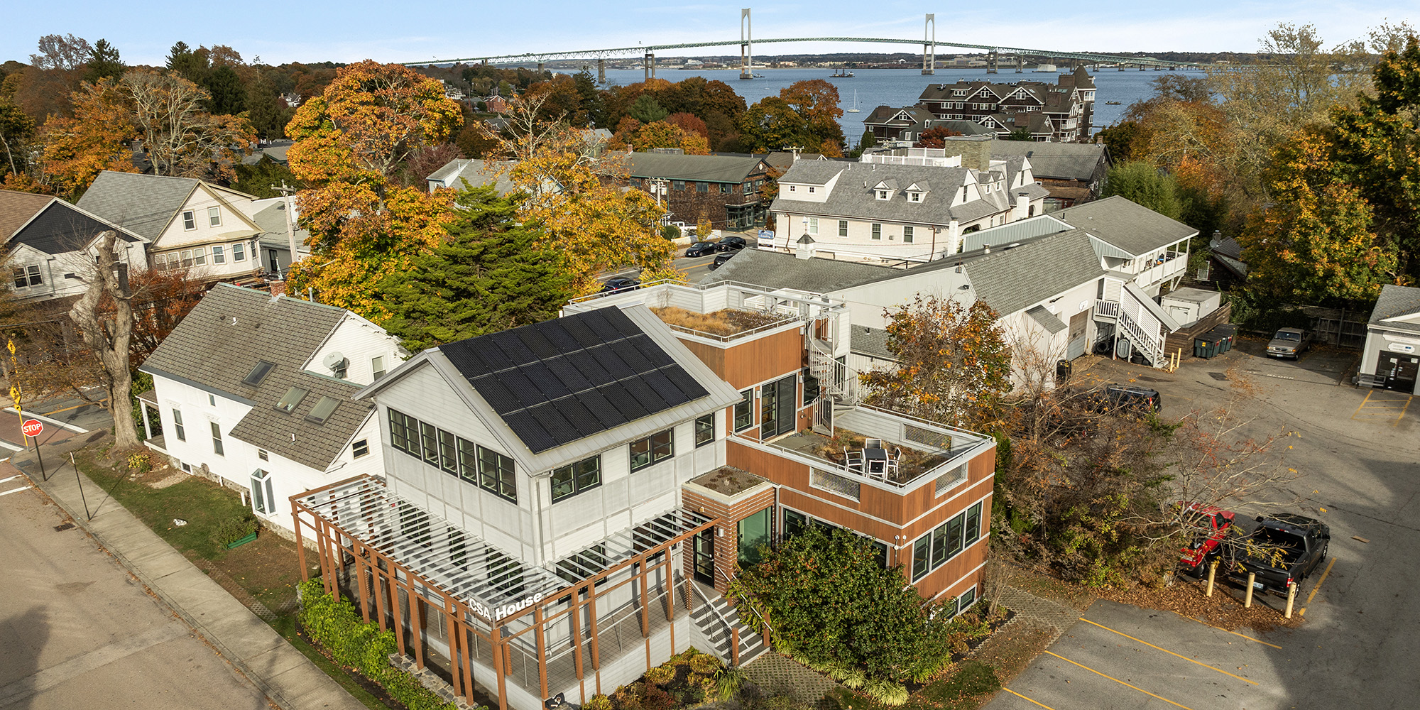 This unique Mixed-Use property in downtown Jamestown allows for residential, commercial, or combined uses. With three finished levels featuring offices, a conference room, two kitchens, three baths, and generous storage space, it’s adaptable for conversion into two or even three distinct units, each with dedicated access, exits, and parking. Its two spacious green roof decks are perfect for entertaining or relaxing with gorgeous views of the Newport Bridge and surrounding landscapes. Inside, sustainable bamboo flooring throughout and large windows bring natural light into every room. Designed with efficiency in mind, the building features a state-of-the-art geothermal heating system, rooftop solar panels, and energy-efficient lighting, making it as eco-friendly as it is beautiful.